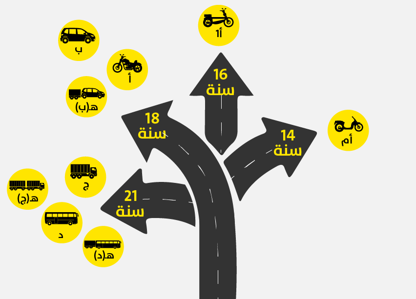 أصناف رخصة السياقة والسن الأدنى المطلوب